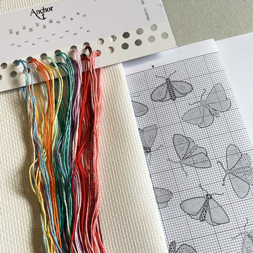 Butterflies and moths cross stitch kit, designed for Anchor.