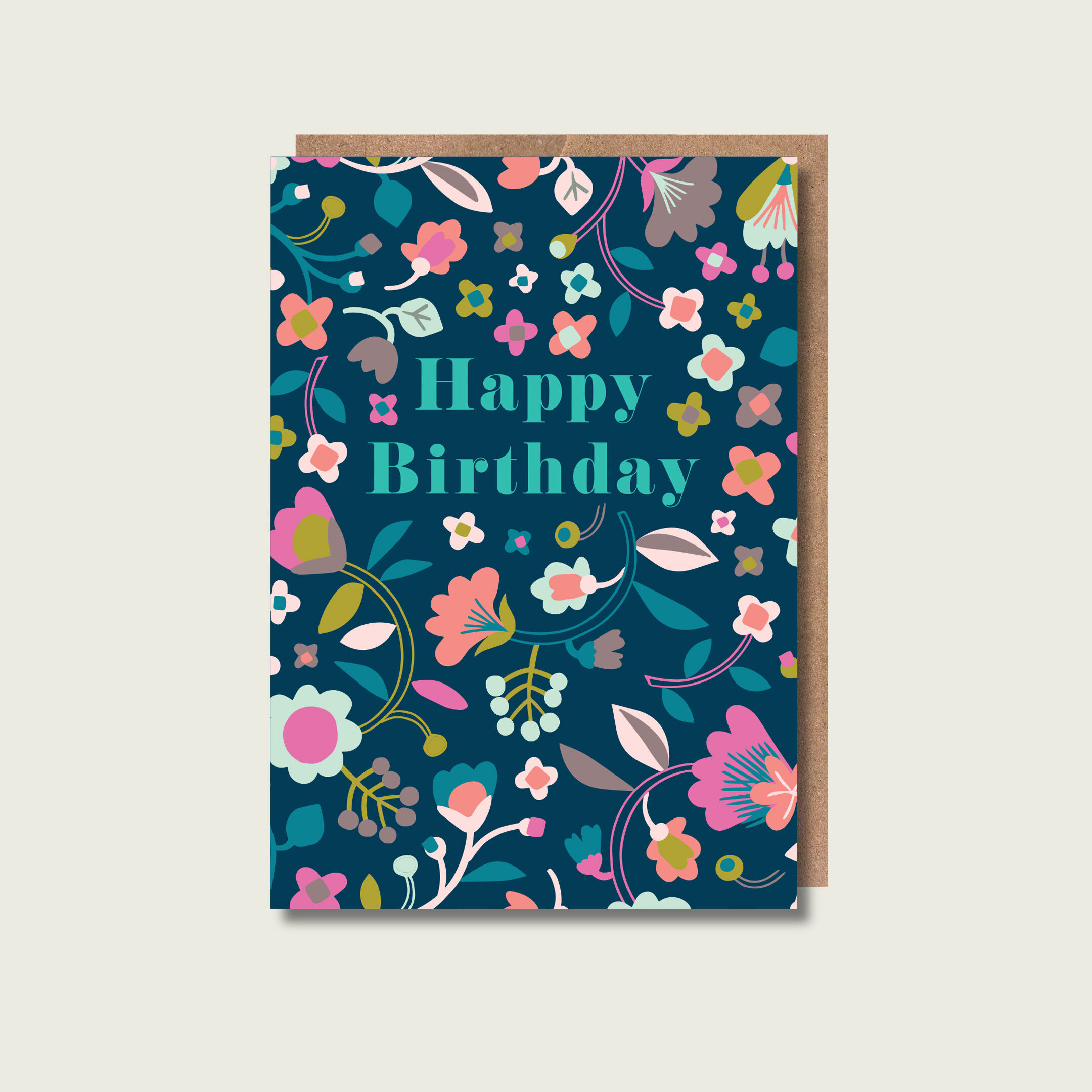Bright and vibrant birthday card featuring colourful flowers. Perfect to send to anyone who loves contemporary design.
