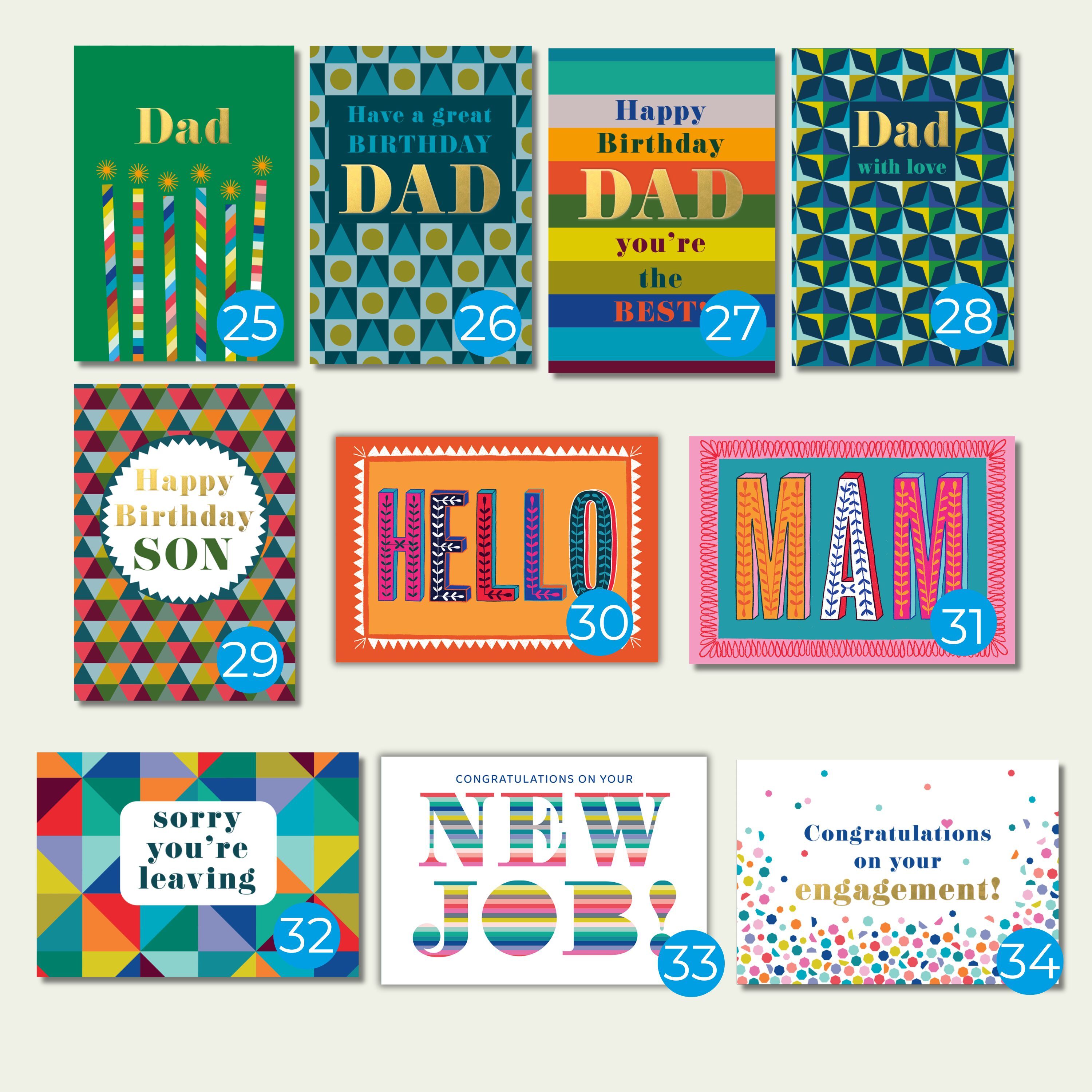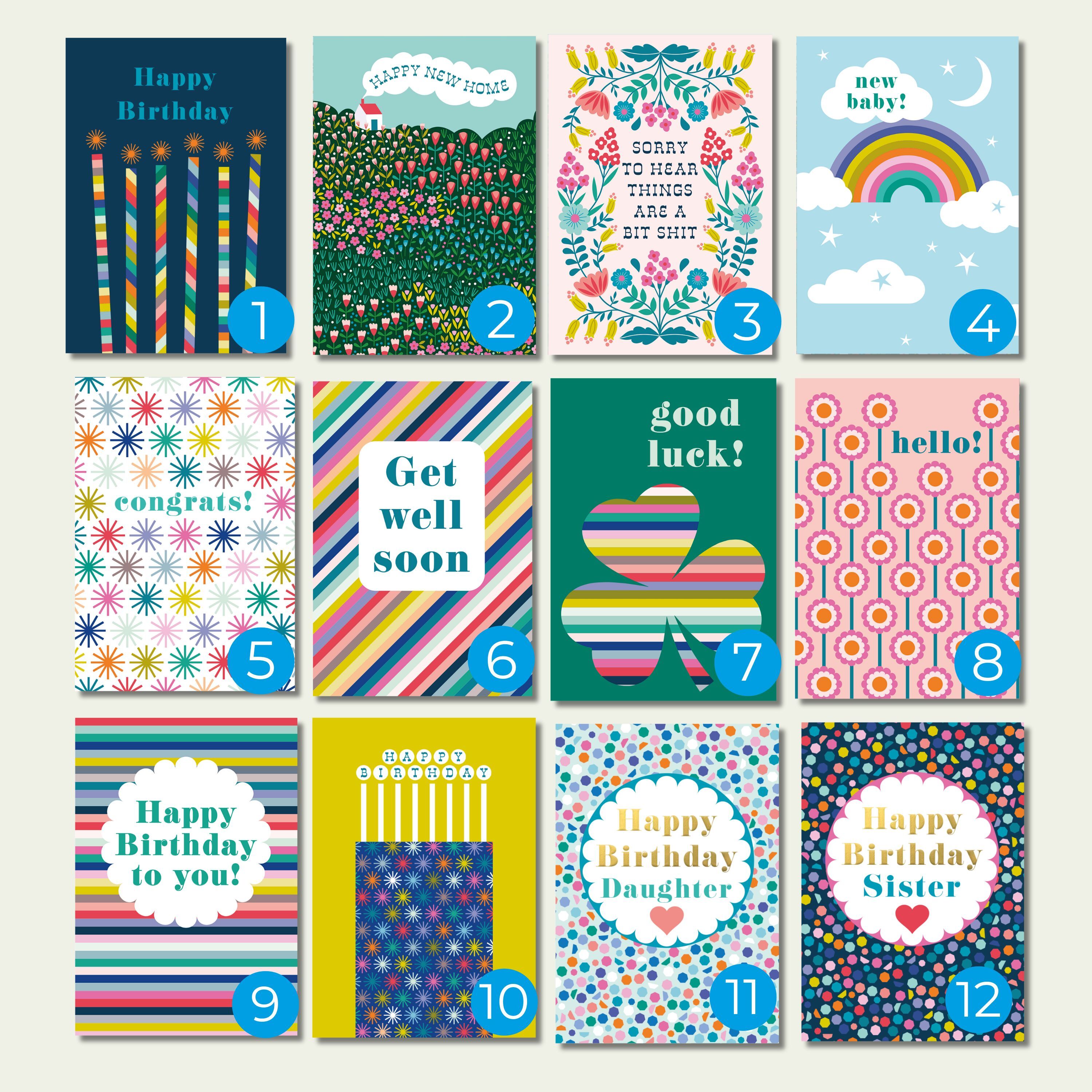 Please see the images on the left to see which designs you would like in your pack and quote the numbers in the note box at checkout. You can choose 10 separate designs or multiples of each.