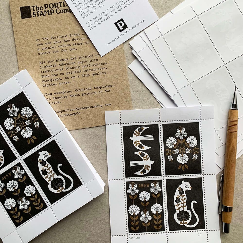 Dream collaboration with The Portland Stamp Company. The stamps are printed using letterpress & perforated by hand, such skill & a real labour of love. Limited edition of 100, all signed & numbered. Available to buy from my shop & on Etsy.